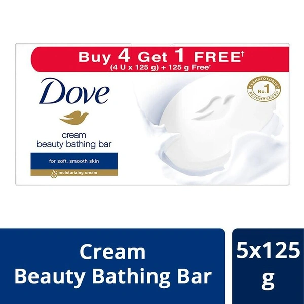 Dove Cream Beauty Bathing Soap 5x125 g - Buy 4 Get 1 Free - Brand Offer